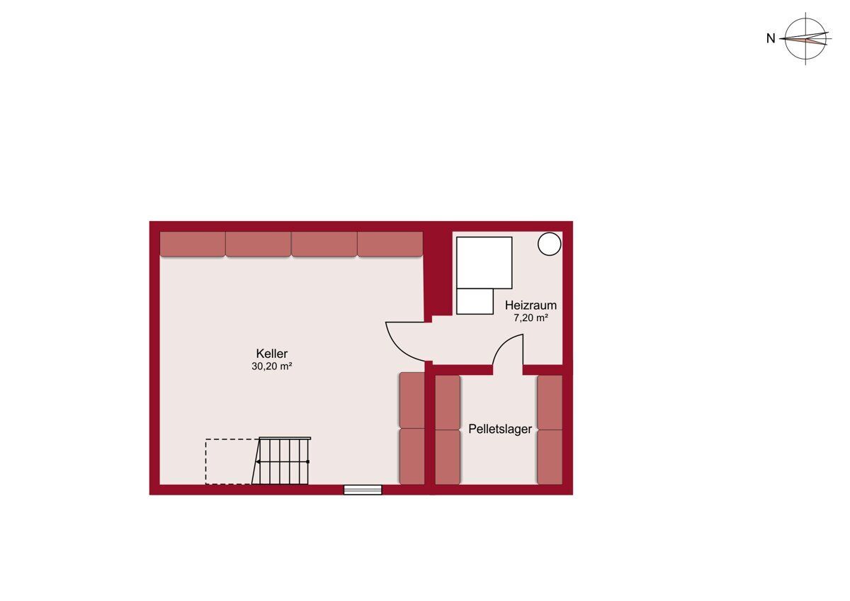 Im Jahr 2015 wurden bereits erste Maßnahmen durchgeführt: Die Pellets-Zentralheizung wurde erneuert und das Badezimmer saniert. Die Heizungsanlage inklusive Pelletlager befindet sich in der unterkellerten Doppelgarage, die Platz für zwei Fahrzeuge sowie zusätzlichen Stauraum bietet. Darüber hinaus eignet sich die Doppelgarage und den darunterliegenden Keller flexible Nutzungsmöglichkeiten. Neben der Garage stehen zusätzliche asphaltierte Freiflächen zur Verfügung, die sich flexibel als weitere Abstellmöglichkeiten nutzen lassen.