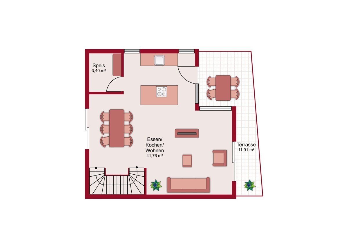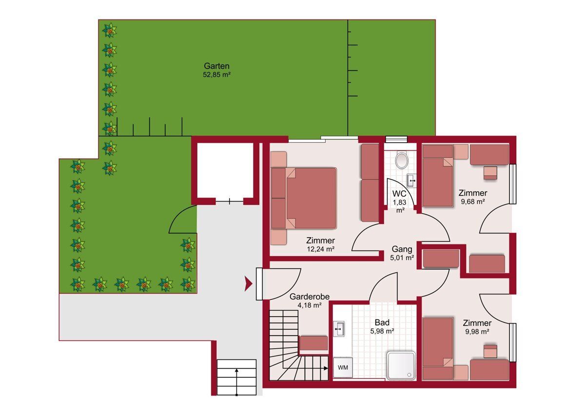 4-Zimmer-Maisonette-Wohnungen (93 - 109m²): Für Interessenten mit erhöhtem Platzbedarf und für all jene, die ein Reihenhaus-Flair über 2 Etagen, einem klassischen Grundriss vorziehen.