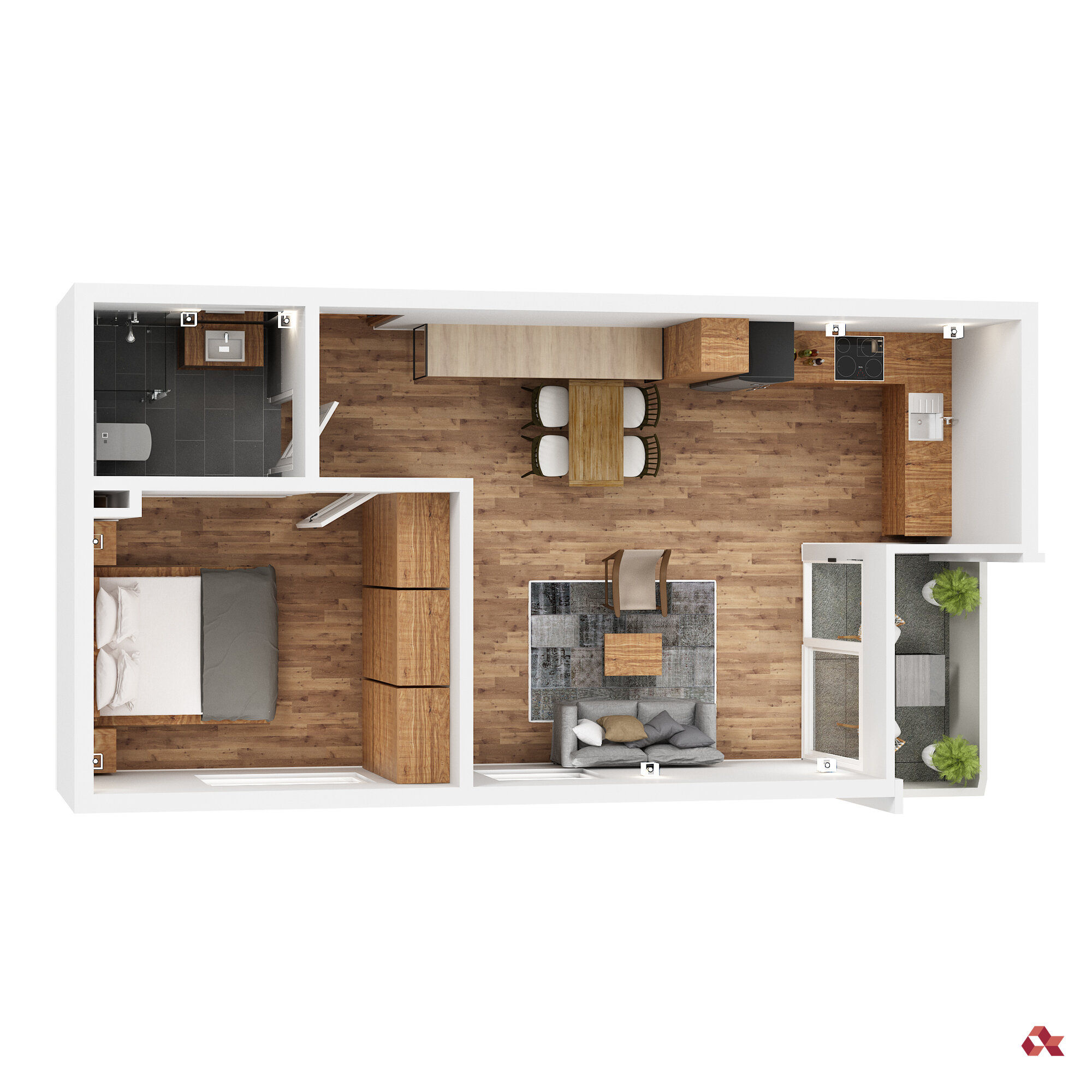 Auf rund 47 m² Wohnfläche stehen zwei optimal geschnittene Räume zur Verfügung. Der großzügige Wohn- und Essbereich mit über 31 m² bildet das Herzstück der Wohnung und bietet ausreichend Platz für Wohnen, Essen und Arbeiten. Die neuwertige Einbauküche ist harmonisch integriert und fügt sich funktional in den Wohnbereich ein. Das separate Schlafzimmer mit über 12 m² schafft einen ruhigen Rückzugsort mit angenehmer Raumproportion.